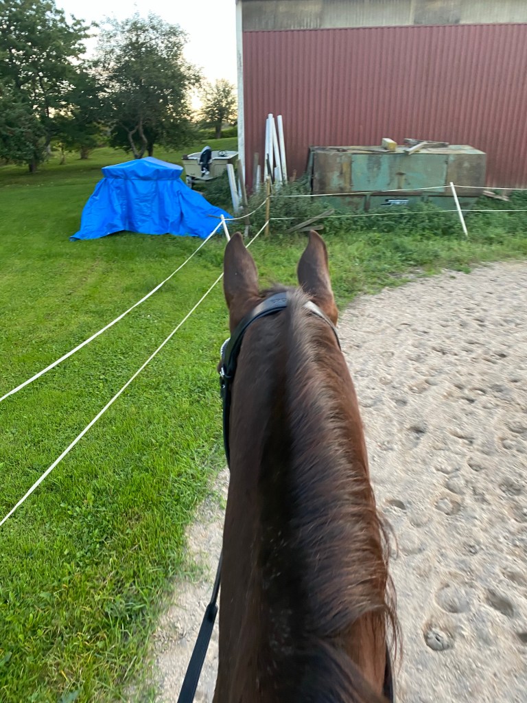 Visserligen lite högt dömt men mycket nöjd med känslan och att han skötte sig utan att glo på allt och utan att hitta på nåt knas efteråt. ❤️ väl hemma körde vi äppelbelöning och sen ut i hagen och rulla.