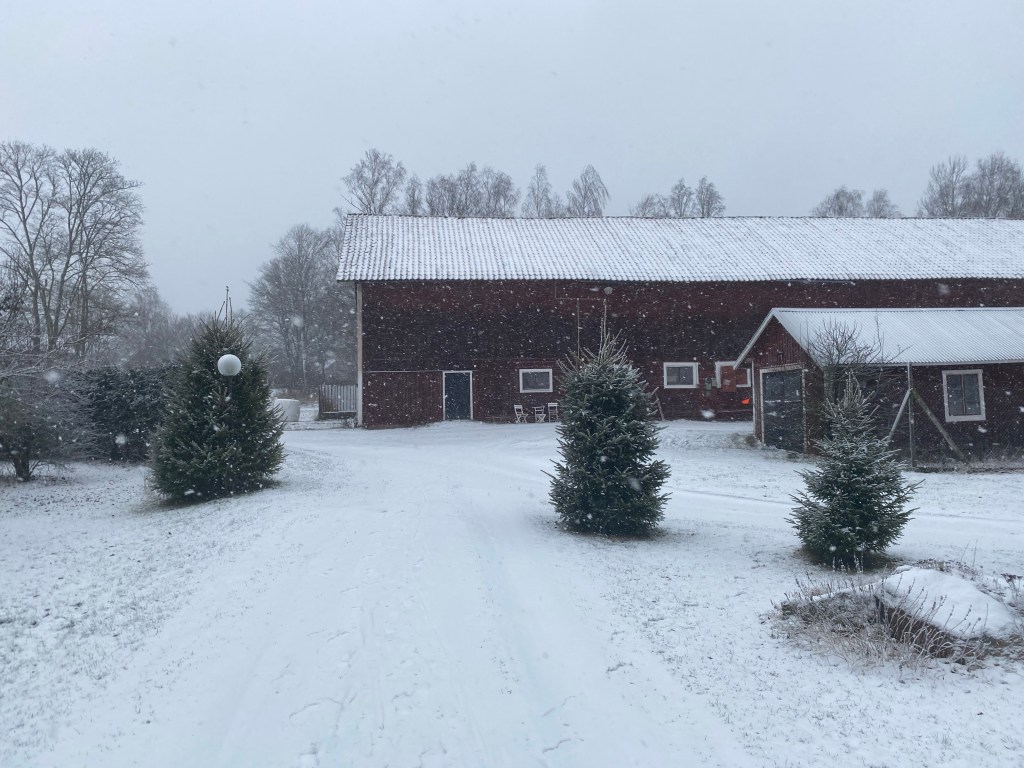 Äntligen lite vinter! Vi har hunnit få lite tjäle i marken så nu kan det ju gärna få snöa bäst det vill. Speciellt bra eftersom ridbanan är frusen nu, toppen med ett par dm snö så det kan bli en riktig vinterridbana 😍