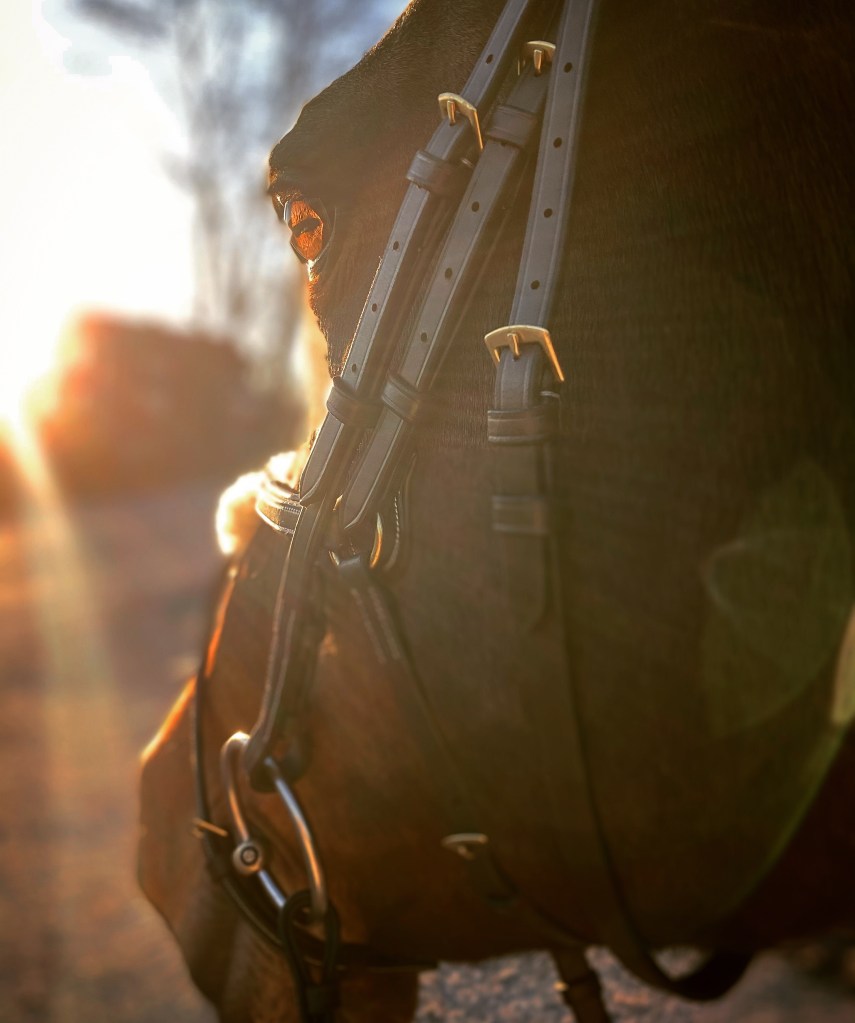 Framåt och glad, mjuk och flöt fint. Jobbar lite med skolor och har börjat samla galoppen ute mera. Lite mera byten. Försöker jobba honom i en lite lägre och längre form periodvis så han ska komma liiiite mera framåt än uppåt.