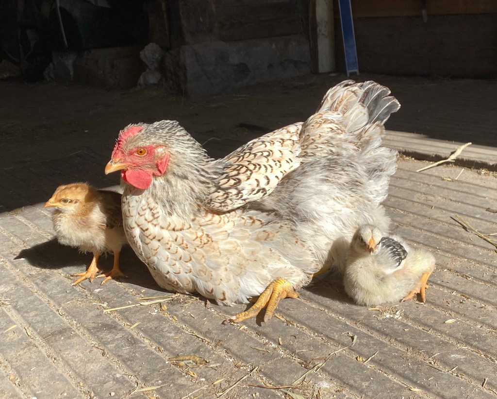 Det är solsken men blåser nordanvind så är bara så där förväntat skönt just när man är i lä. I tisdags kom två små kycklingar så det blev bara 4 totalt. Men dom är ju så underbart söta så det är svårt att se sig mätt på dem!