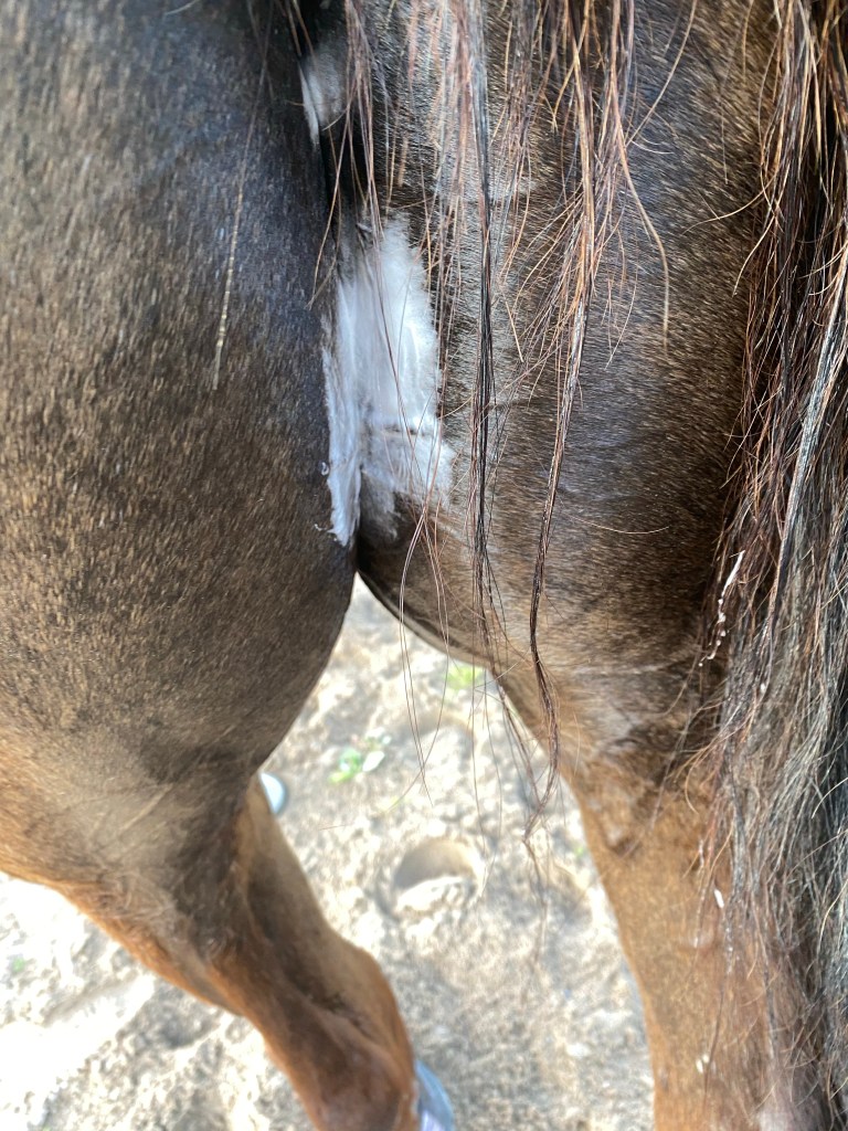 Goggles var svettig och fick bada efteråt, linimentad och grejad med och sen komma in till sig, det var ju ändå dags att komma in för allihopa och få nattgröten så småningom.