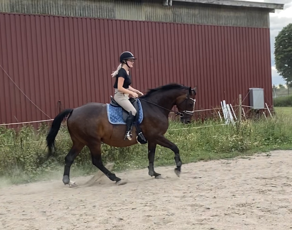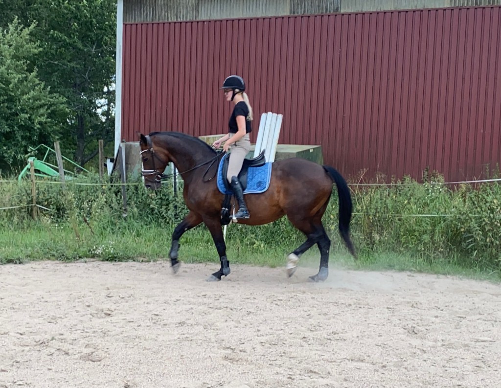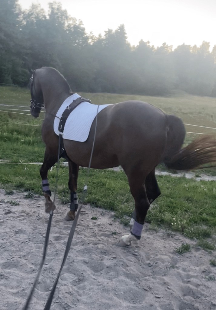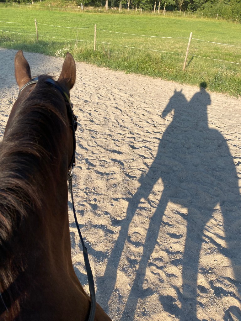 Kvällen efter red jag ett pass med fokus på övergångar och lite tempoväxlingar. Att hitta den samlade galoppen snabbare och att rida fram ur den snabbare. I programmen har man inte så många språng på sig att utföra saker och jag behöver öva på att inte sitta och dra uuuuuuuut på det innan jag kommer till skott, utan rida lite framåt, in på diagonalen, samla max 3 språng sedan vända in i piruetten, rakriktad och rida framåt igen.