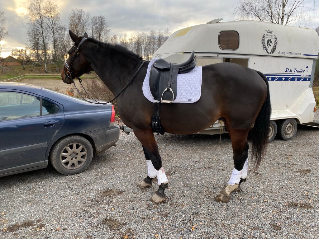 Vi skrittade av länge och plockade sen av sadel, öde på ett täcke och sen lastade vi och åkte hemåt.