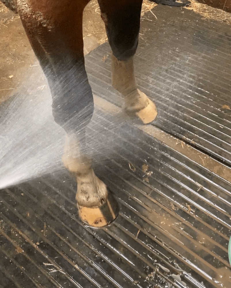 Lerigt och blött, blir mycket spola hästben. 🙄 Stig tycker det är jätteäckligt med vattenslangen men han börjar vänja sig lite. Fast kul är det ju inte 😂