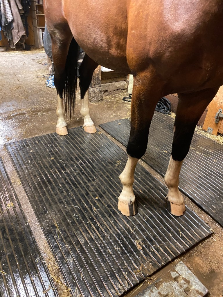 När vi gick ut för att longera så syntes inget ojämnt bak när han gick ut ur boxen och då hade han ändå stått länge på hårt underlag. Vid longering ingenting heller så hon hade hittat rätt igen.