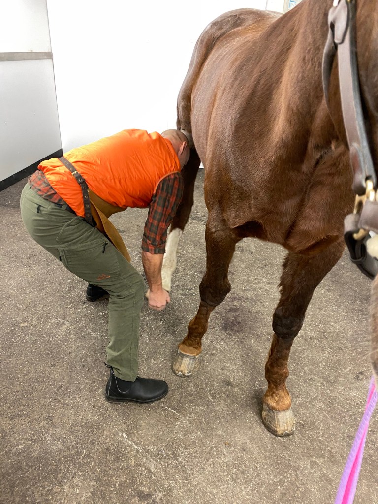 Så vi gick in igen och bedövade (och sprutade kortison i samma) kotled och hovled höger fram, sen fick han vila medans bedövningen tog.