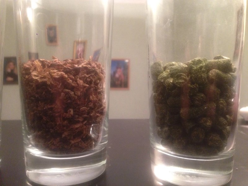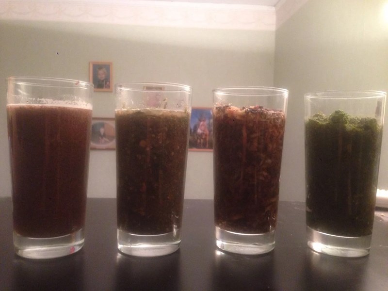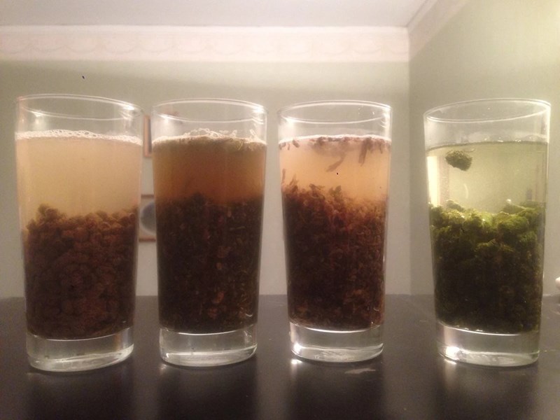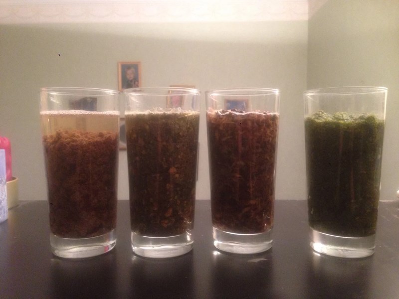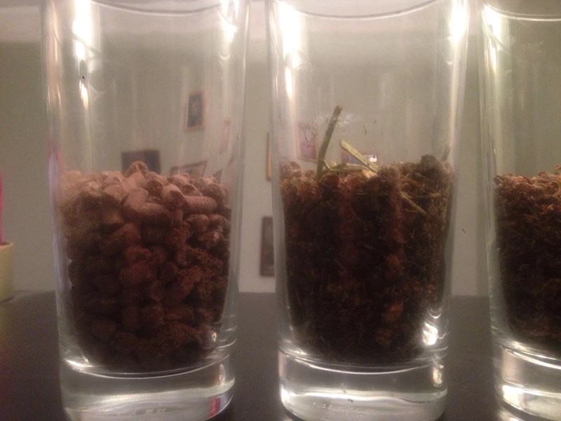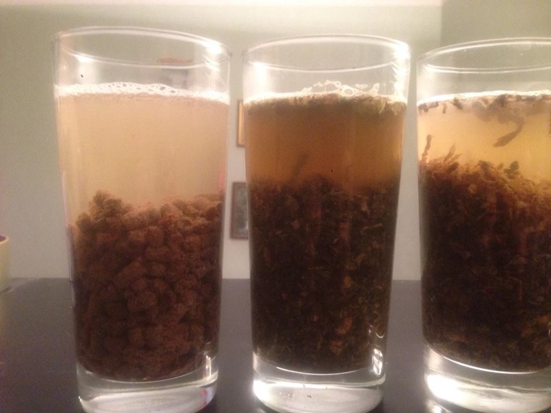 Den blandning som är torrast är inte oväntat Lusernpelletsen som det inte rinner nåt ur om man vänder på glaset!