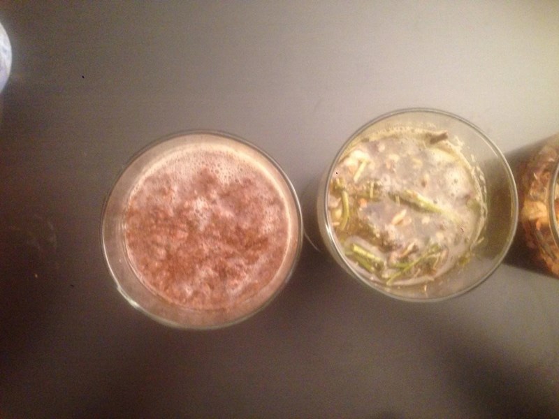 Och detta var ca 1,5 dl torr vara i glasen, och slog på vatten upp till samma nivå i alla glasen. Mera foder= mera vattenbehov.