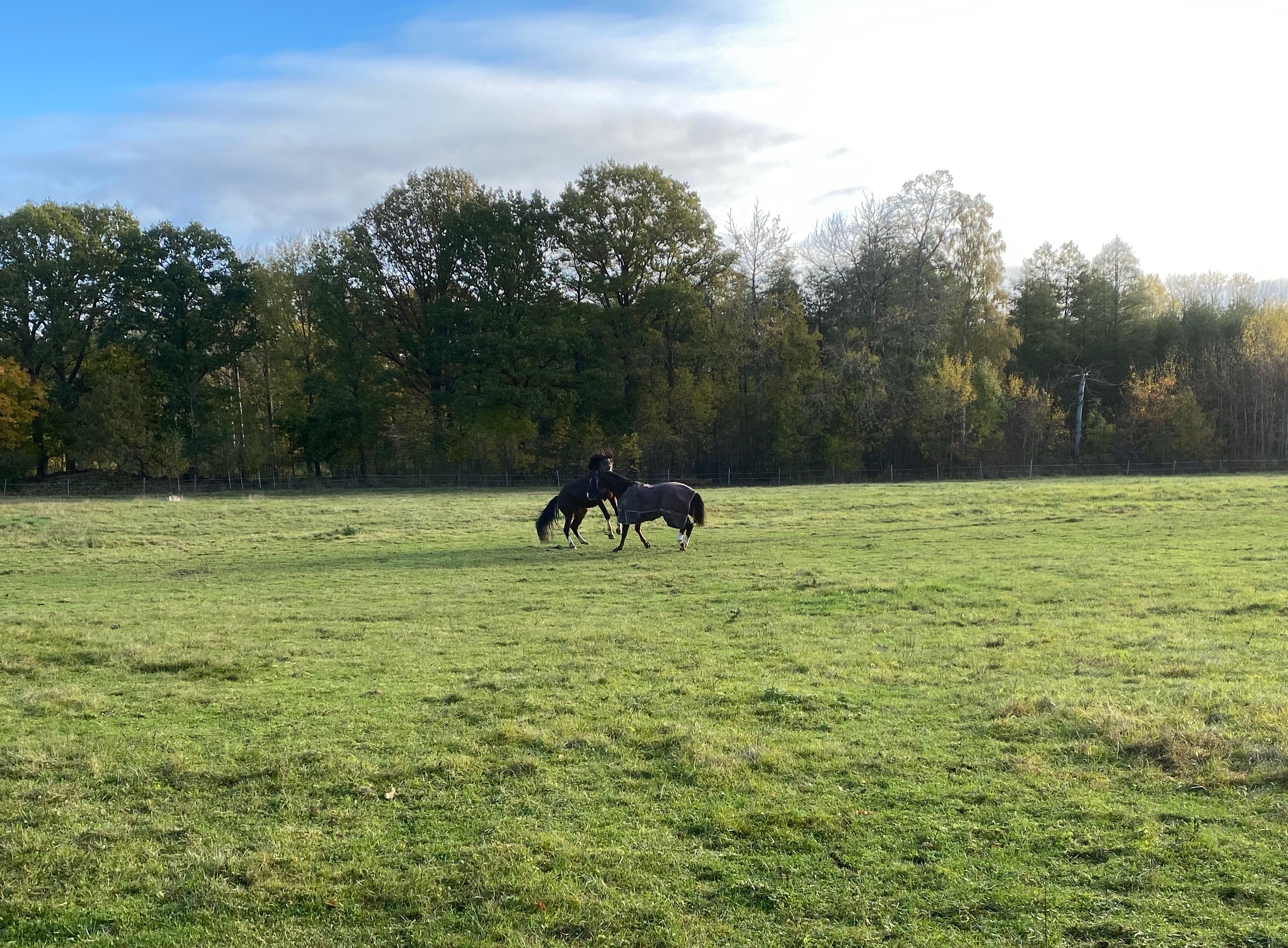 Dessutom har de en stor hage på drygt 4 ha att ränna runt i 😃