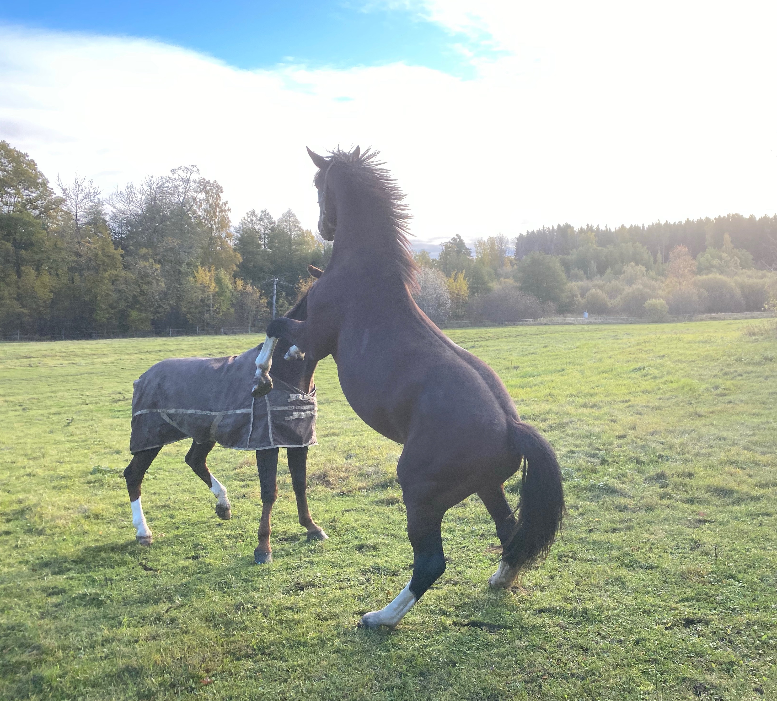I övrigt har Goggles fått två vilodagar efter tävlingen. Igår hade alla tre hästarna rally i hagen och dundrade runt som om ett lejon jagade dom, inblandat med en massa hopp och skutt och bus. Så härligt se!