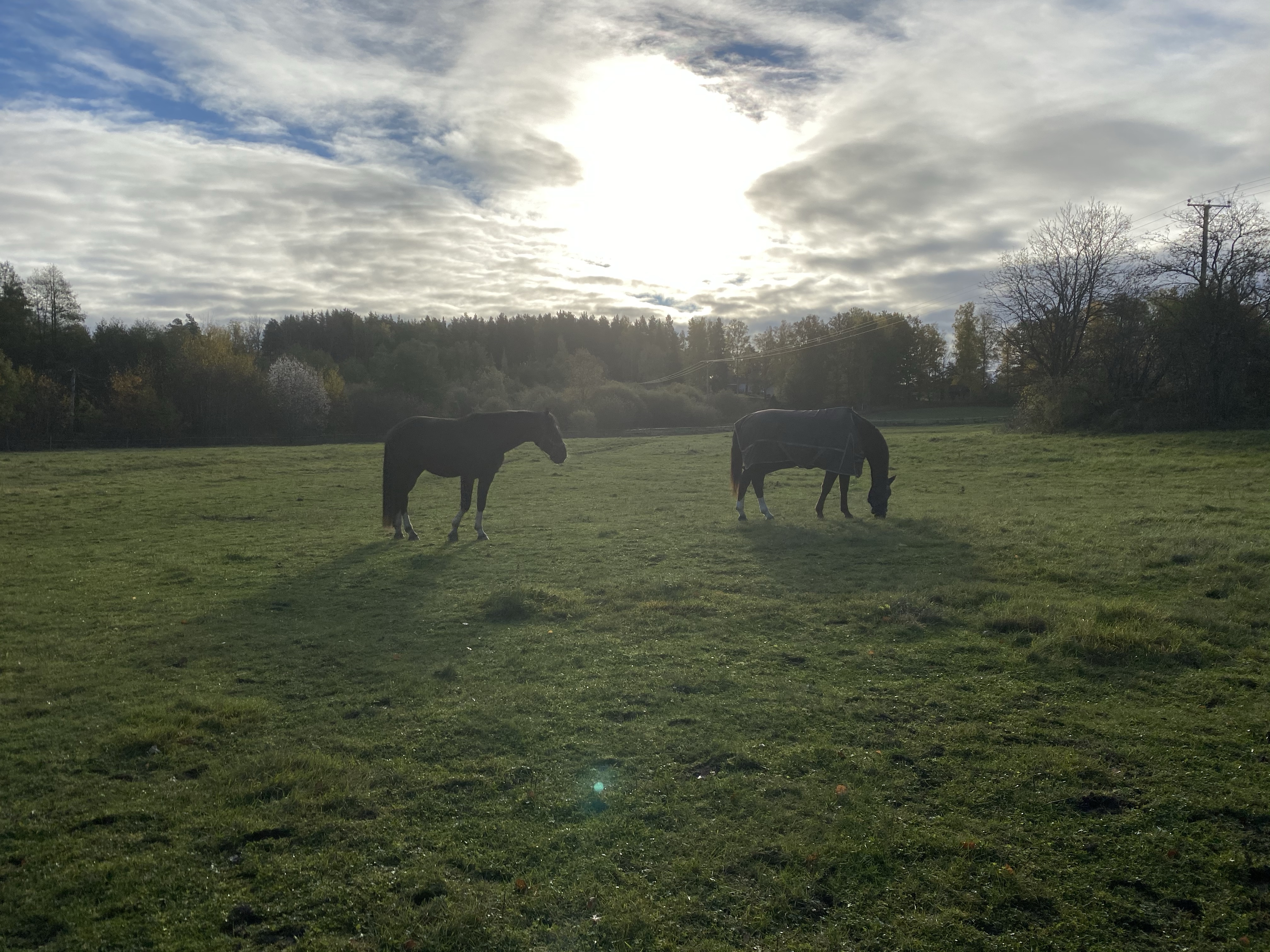 Söndagen fick Goggles vilodag och jag hade en helt ledig dag. Det vräkte ner regn hela dagen så hästarna släpptes ut påklädda i hagen, själv satt jag inomhus i soffan med elden sprakandes i köksspisen och glodde på tv och hade det gött ❤️ inte ville då hönsen gå ut heller!