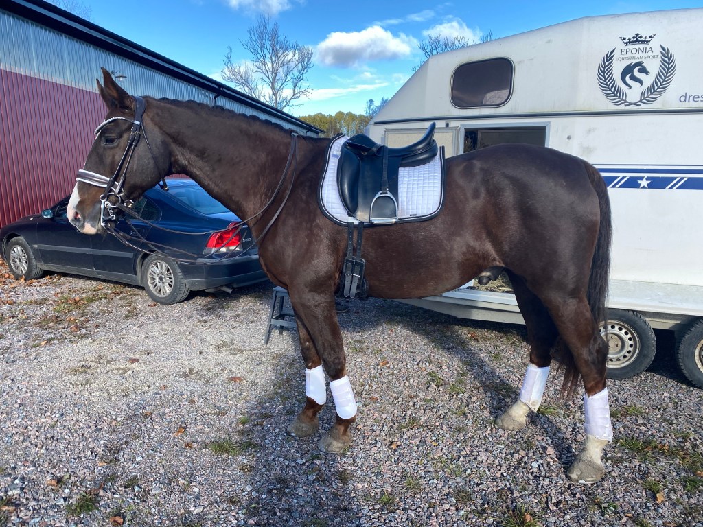 Hämtade ut sadeln förra veckan och provred den såklart direkt. Lite svårt med en sadel som har helt ny stoppning då den känns lite ”rullig” i början och inte satt sig riktigt.