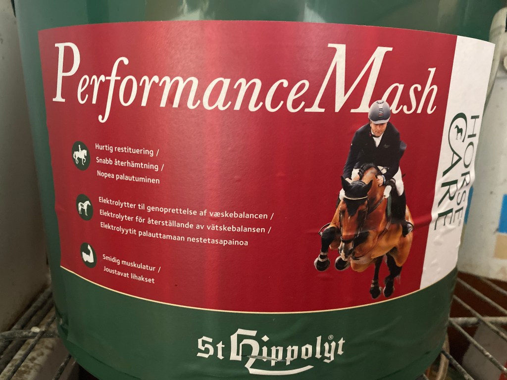 Irish Mash brukar alla hästarna få 3-4 ggr per vecka, och Performance Mash som Goggles får när vi tränar och tävlar och är ute och ränner.