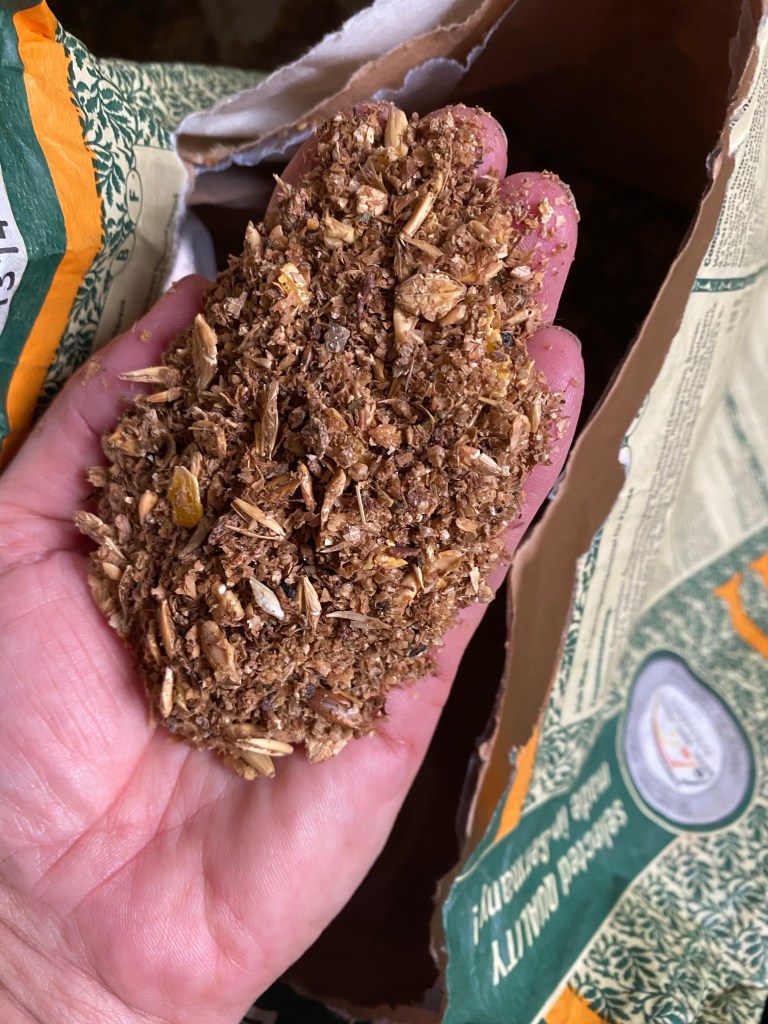 Häromdagen var jag till Lena och hämtade lite foder, dels en säck Irish Mash och sen en hink Performance Mash.