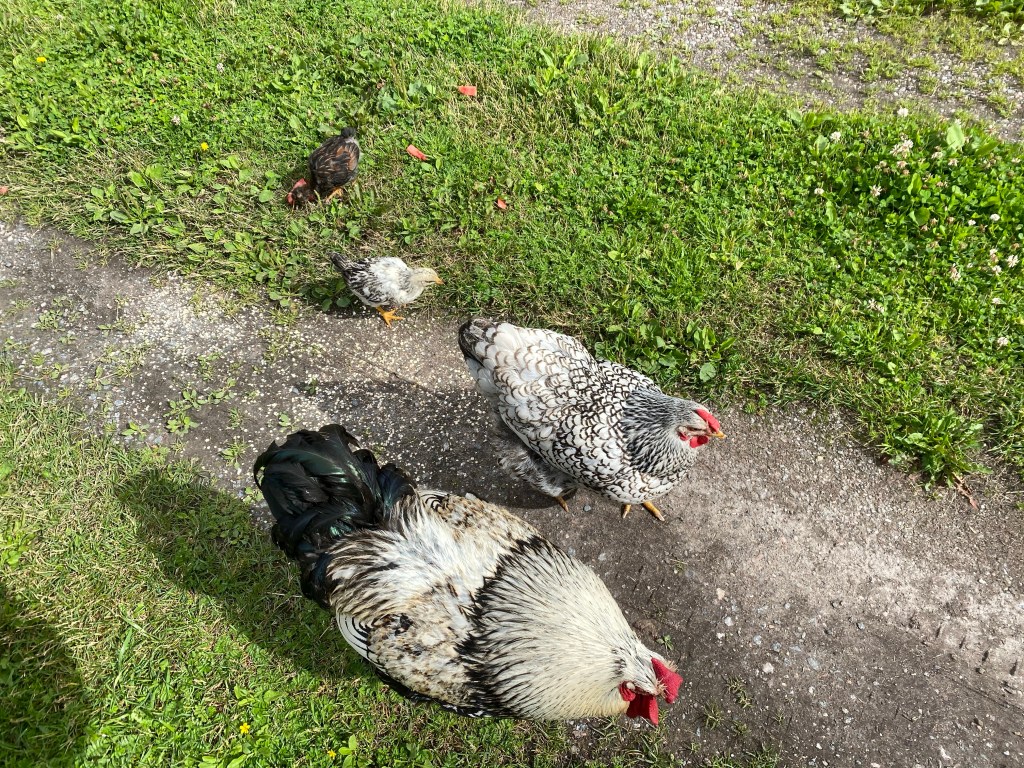 Kycklingarna växer och är drygt 2,5 månad nu. Skönt när alla fåglarna kan och vill vara ute igen. De är väldigt duktiga på att skräpa ner inne 😂