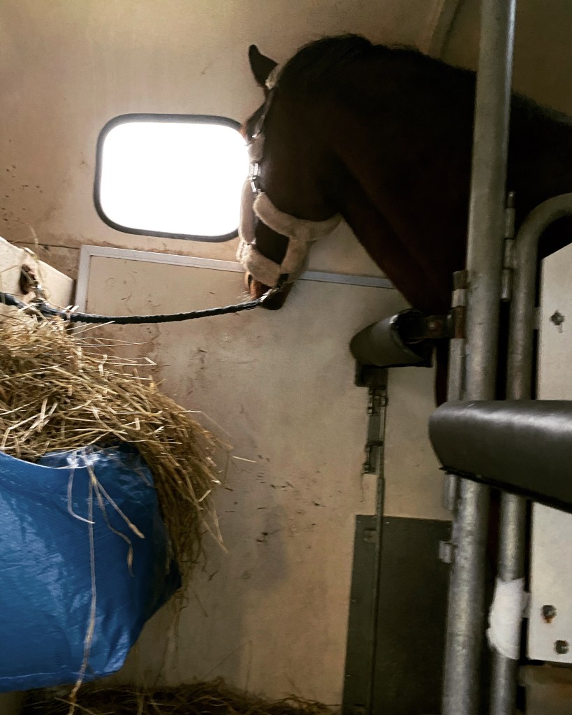 För övrigt åkte han på schampobad kvällen innan, kan ju inte åka bort se ut så där 😂😂😂 oerhört lurvig modell häst faktiskt haha…