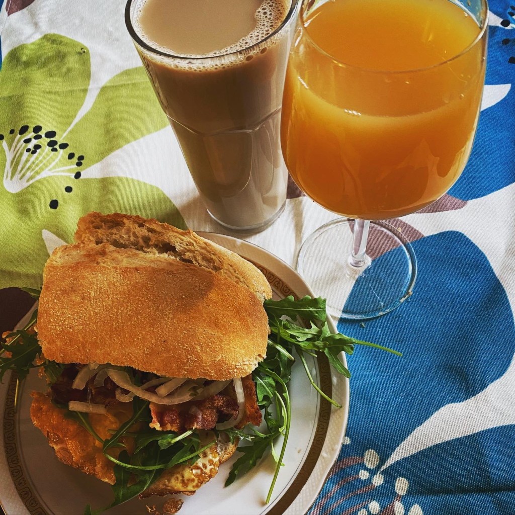 Jag har haft jobbhelg så det blir inte så mycket vettigt gjort mer än eldat, tittat på vintersport, hämtat ved osv. Ja och stallet såklart då. Tog mig lyxbrunch på lördagen med nybakt bröd med ägg, bacon och grönsaker, kaffe och färskpressad juice.
