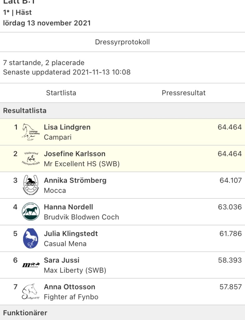 Ja, jag och Mocca har faktiskt varit på en riktig tävling. 😍 Jag hade egentligen inte tänkt att vi skulle göra nån start alls iår, men när jag ändå betalat årets licens på Mocca för min medryttare skulle tävla, (men det blev ju inget av det alls) så tänkte jag att då kan jag ju lika gärna starta henne själv. Så hittade en lokal Lätt B1 i Finspång och anmälde dit. Och Goggles kom ju inte ut på nån tävling alls iår. 😂