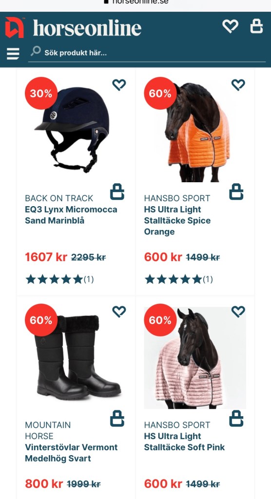Horseonline har också rea, där fanns bland annat täcken till 60% rabatt. Plus massa annat också då. 😁