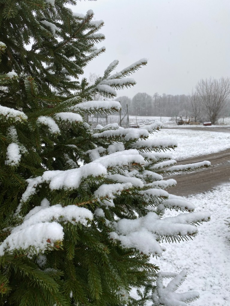 Äntligen lite vinter! Vi har hunnit få lite tjäle i marken så nu kan det ju gärna få snöa bäst det vill. Speciellt bra eftersom ridbanan är frusen nu, toppen med ett par dm snö så det kan bli en riktig vinterridbana 😍
